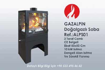 Doğalgazlı Şömine  en 90 cm üç camlı