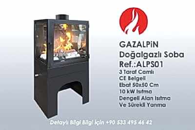 Doğalgazlı Şömine Gazalpin Hazne ebat 70 cm en Limra beyaz doğaltaşlı uzaktan kumandalı CE sertifikalı ısı kapasite 86.7
